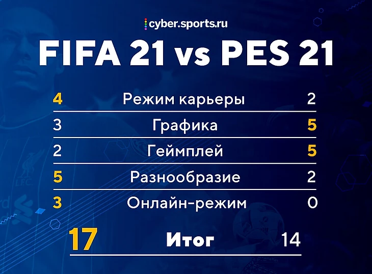 Итог: FIFA – 4 балла, PES – 2 балла.