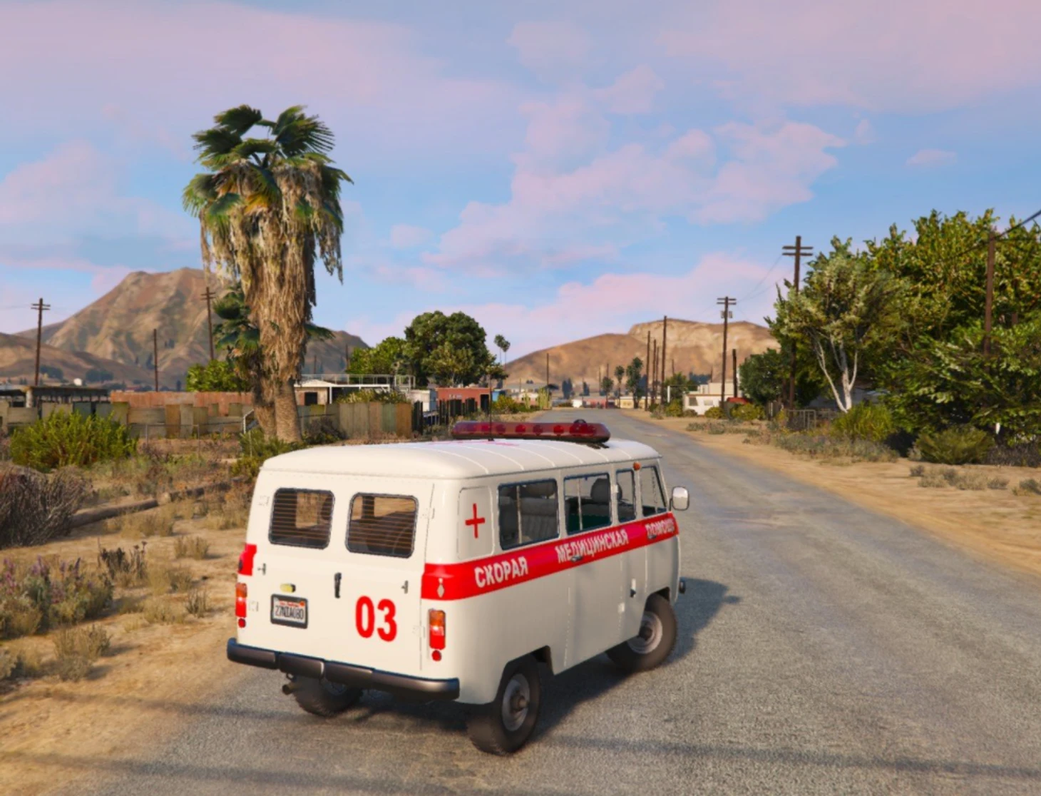 «Буханка» скорой помощи – https://gamemodding.com/ru/gta-5/cars/76572-uaz-3962-ambulance.html