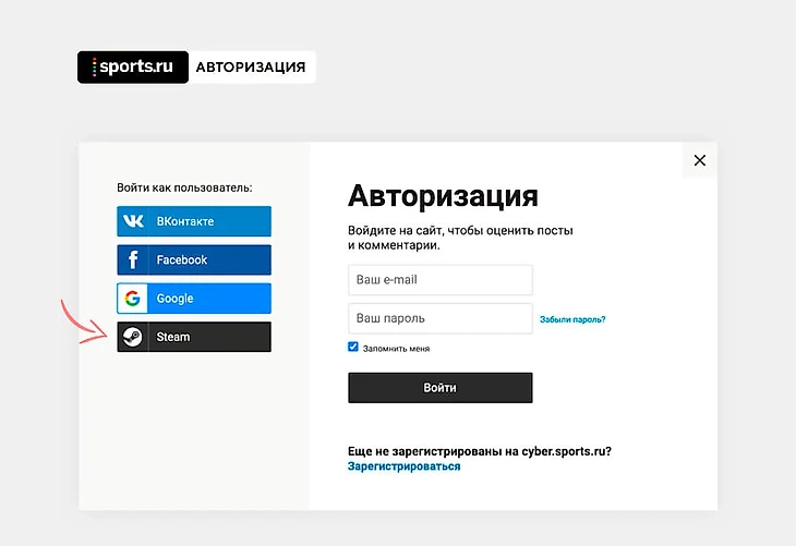 Пока такой тип авторизации доступен только на киберспортивной и игровой части Sports.ru, но, если вам очень хочется иметь Steam-аккаунт и на основном Спортсе, – ставьте плюсики, и мы сделаем 🤗