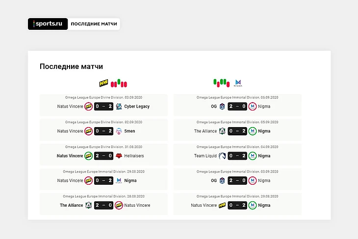 📆 Мы обновили матч-центр Dota 2 на Sports.ru. Теперь следить за играми команд стало еще удобнее