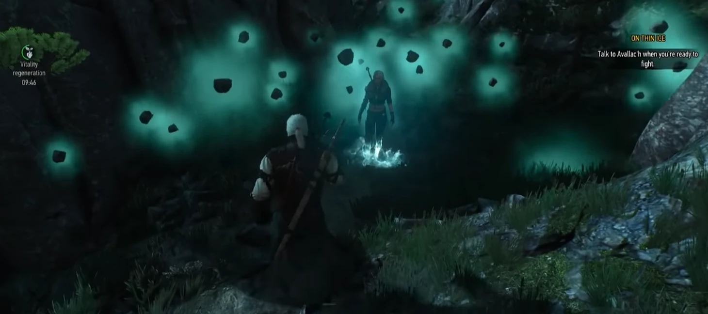 • Перед финальной битвой на Скеллиге Геральт может выбраться из лагеря нильфгаардцев и пойти к горе. Там, вдалеке от случайных зрителей, Цири будет тренировать магические навыки, поднимая камни. Выглядит по-джедайски.