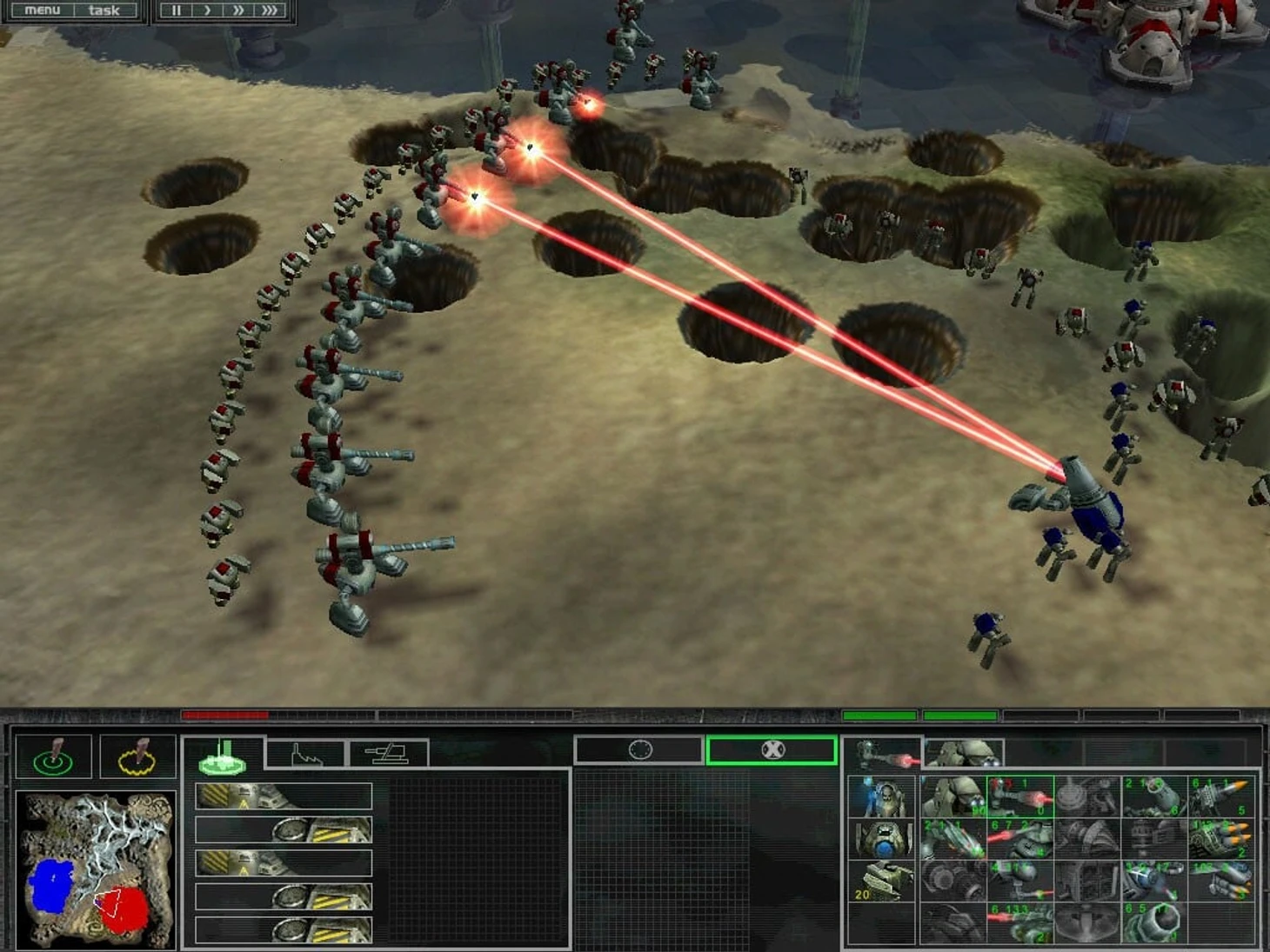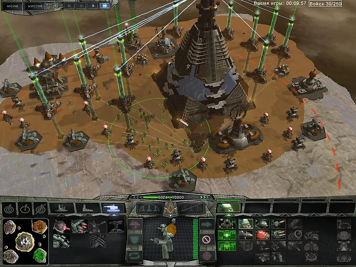 Так появился особый инструмент для управления бригадирами, которые хостили сотни микроюнитов, выполнявших низкоуровневую переноску грунта потоком команд, который нереально было бы выполнить вручную. Сюда же относится управление энергетической системой с развитием графа связей ядер. Но когда мы собрали игру в ранней версии и начали показывать, оказалось, что она, так скажем, слишком необычная – люди не могли использовать свой предыдущий опыт [в стратегиях].