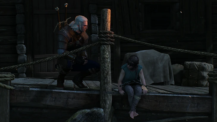 Он расскажет предысторию – деревня хоть и выглядит богатой (ну, по меркам остальных веленских деревень), староста отказался платить ему за заказ больше 12 крон из-за войны и тяжелой ситуации. Гаэтана завели в амбар, где по словам старосты хранятся деньги, и ударили вилами в спину – реакция не подвела ведьмака, и он выжил, хотя ранен. Он перерезал всех жителей, но пощадил Милку, потому что она напомнила ему сестру.