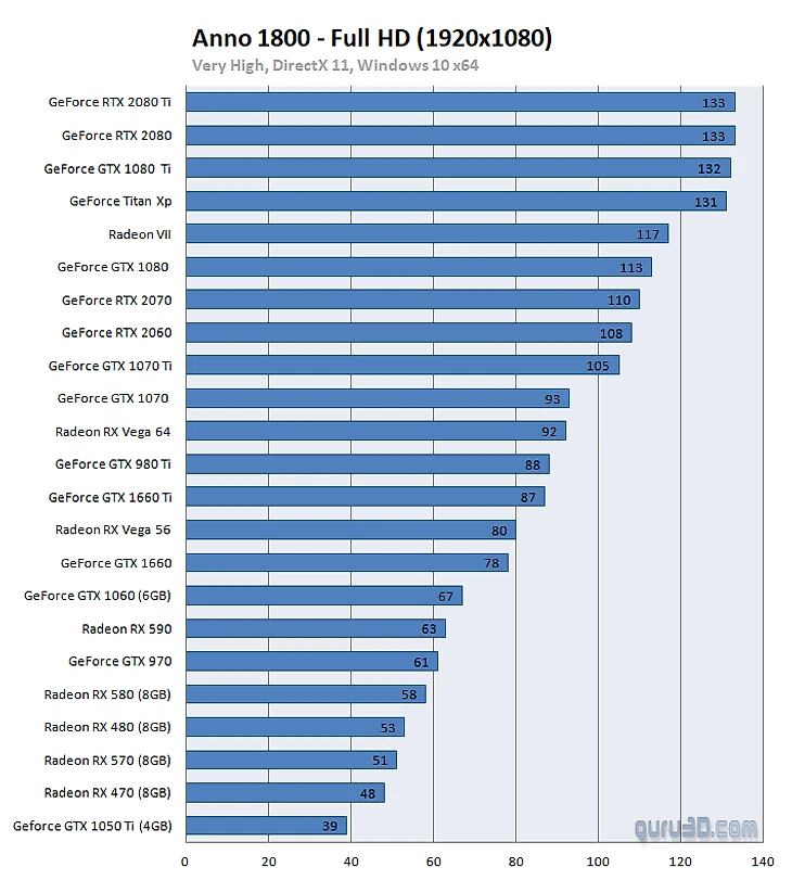 Даже у владельцев RTX 2080 Ti будет меньше сорока кадров. Обладатели более массовых продуктов вроде 1660 и 1060 вообще смогут разглядеть каждый кадр. Впрочем, это проблемы белых людей, давайте посмотрим сравнение для Full HD.