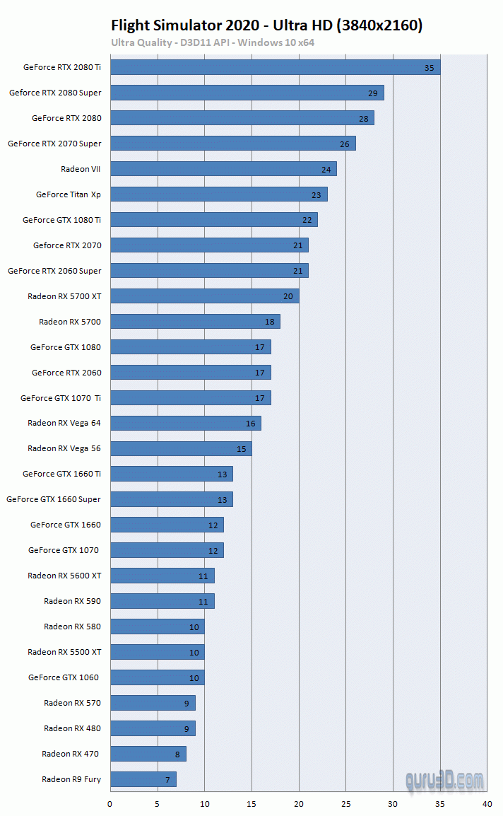 Тут все гораздо интереснее. До 60 кадров на ультра-настройках не дотягивает вообще никто – прямо как Crysis в 2007 году. Для авиасимулятора достаточно 30 fps – все же это не ААА-шутер. Все остальные симуляторы обычно затачивают под 25-30 кадров, это норма жанра.