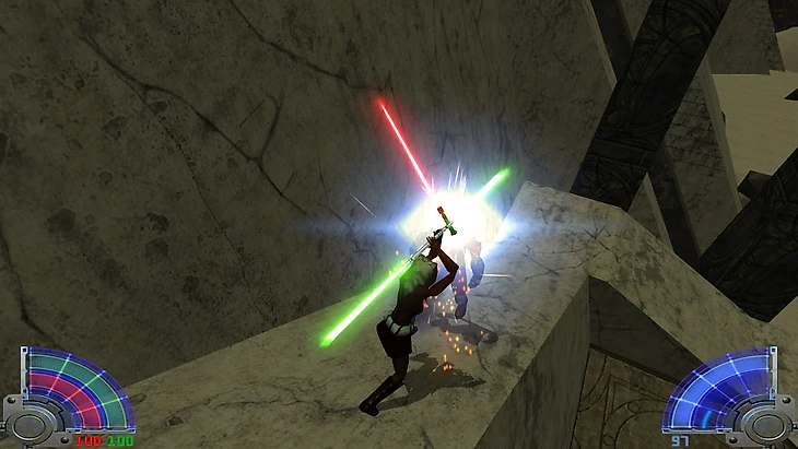 LucasArts ответили. Там очень любили Baldur’s Gate – и захотели похожую двухмерную игру, только в сеттинге «Звездных войн» с новым сюжетом. Но BioWare мечтали о 3D: во-первых, из-за страсти к прогрессу, во-вторых, только 3D могло передать размах вселенной Star Wars. Стороны договорились, что RPG будет масштабной, с кинематографическими сценами и диалогами.