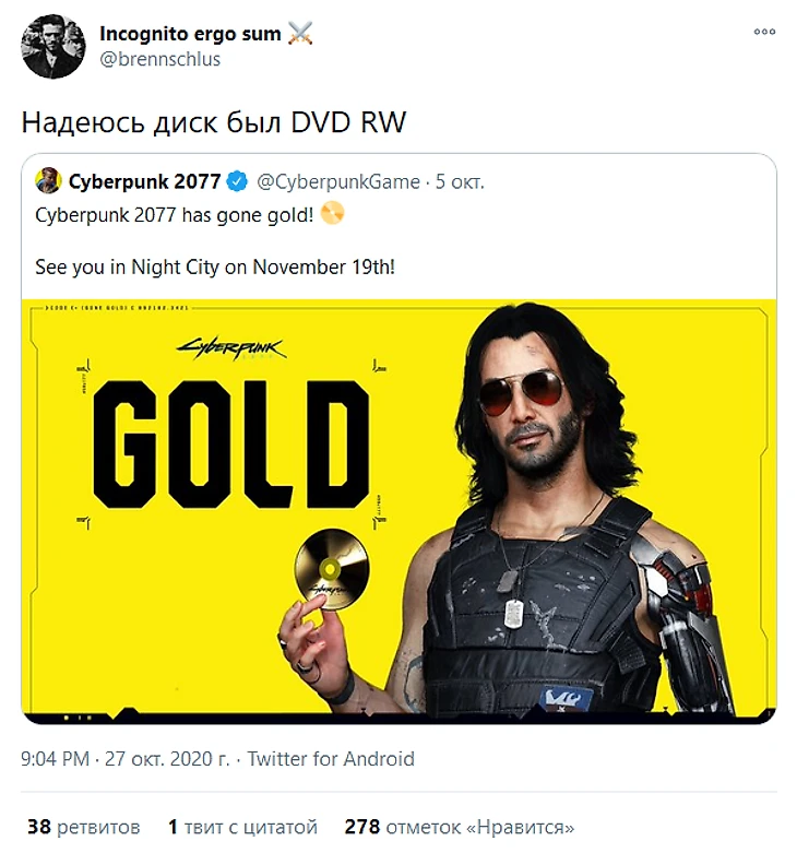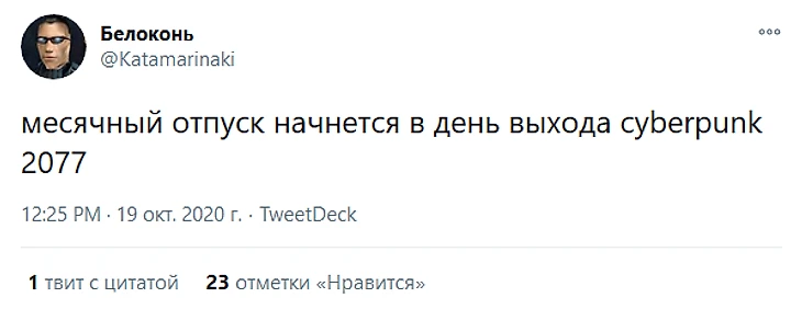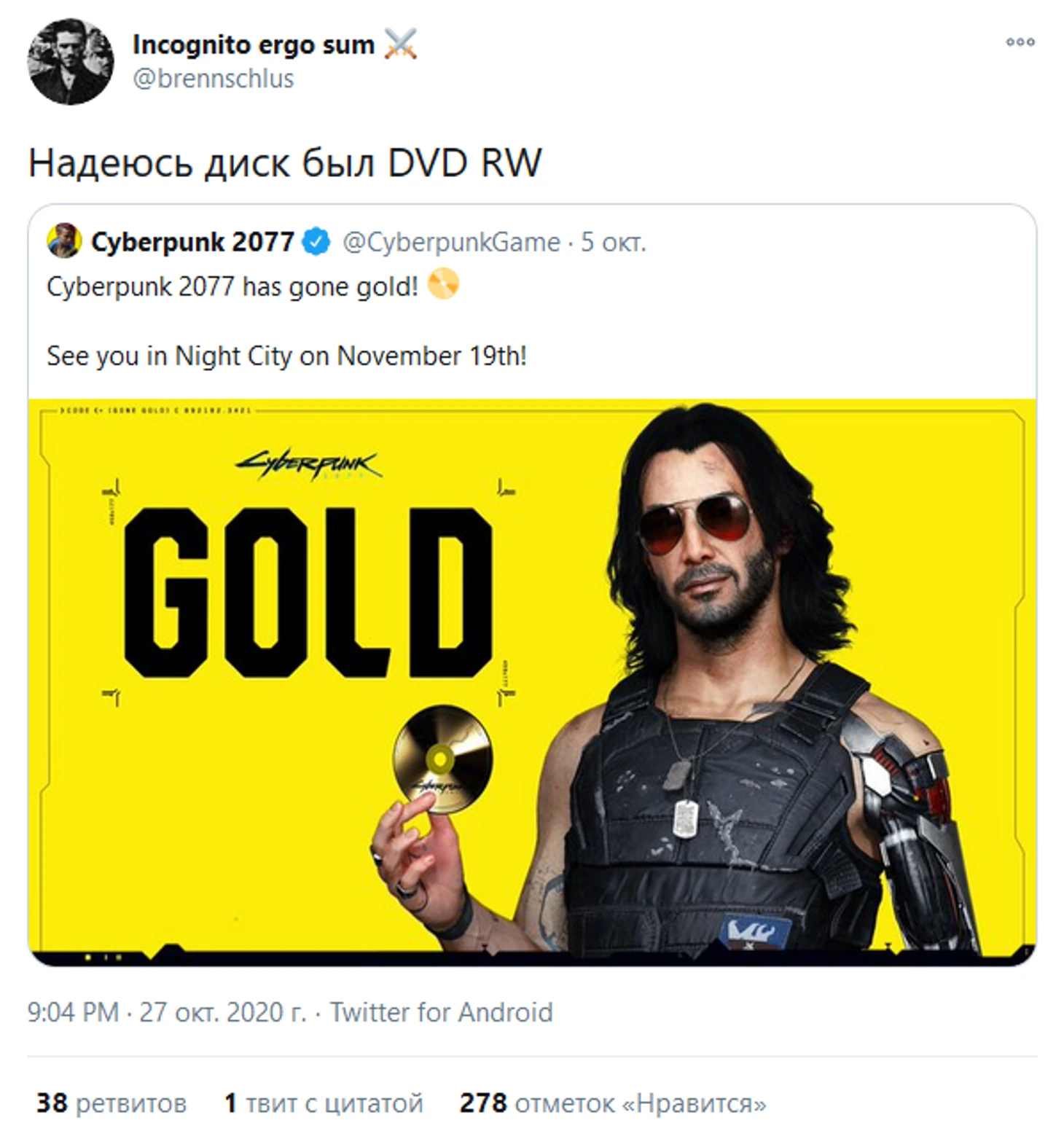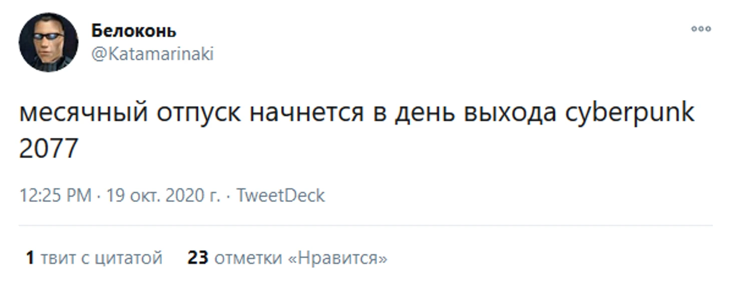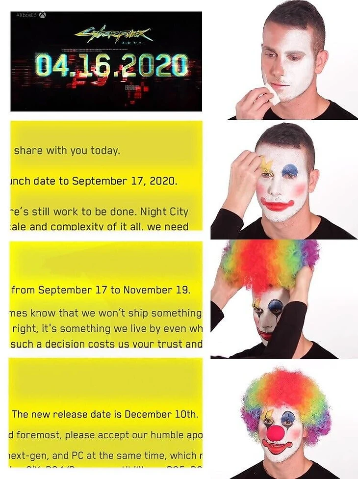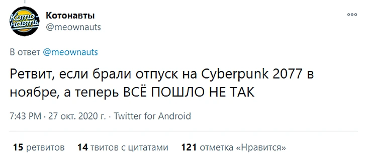 После того как геймеры осознали, что это не шутка, в интернете началась истерика – люди не были готовы к еще одному переносу. Многие даже запланировали отпуск, чтобы раствориться в Найт-Сити в ноябре: