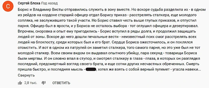«Это хотя бы честно, на самом деле, мы оба заслуживаем такой участи. Встретились два самых крутых человека Зоны».