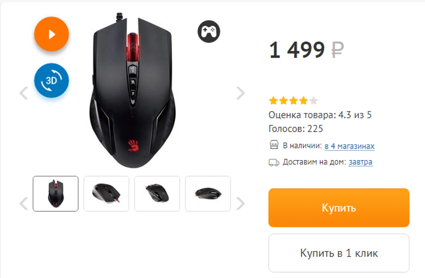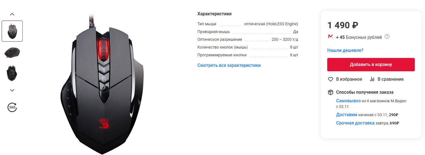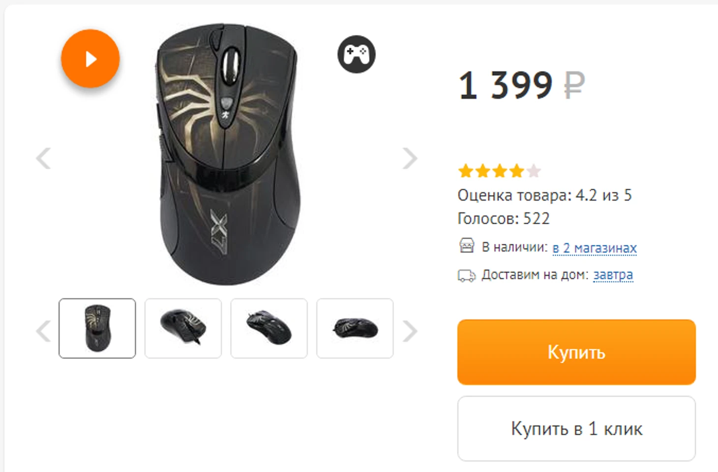 Еще одна недорогая мышь, но уже от другого не менее известного производителя A4Tech. Она обойдется вам в 1400 рублей. Всего на модели семь кнопок. Она предлагает довольно широкий выбор dpi: от 800 до 2000. Этого вполне хватит, чтобы настроить CS:GO. Кстати, мышка разработана и выпущена уже очень давно, поэтому потестить ее успело много людей. Вот один из комментариев пользователей: “скорее оболочка сотрется от старости, чем она сломается”. Прочитав больше отзывов, мы поняли, что люди не находят каких-то объективно серьезных минусов, а отмечают сугубо личные придирки. Вполне возможно, этот вариант станет для вас идеальным, поэтому присмотритесь.
