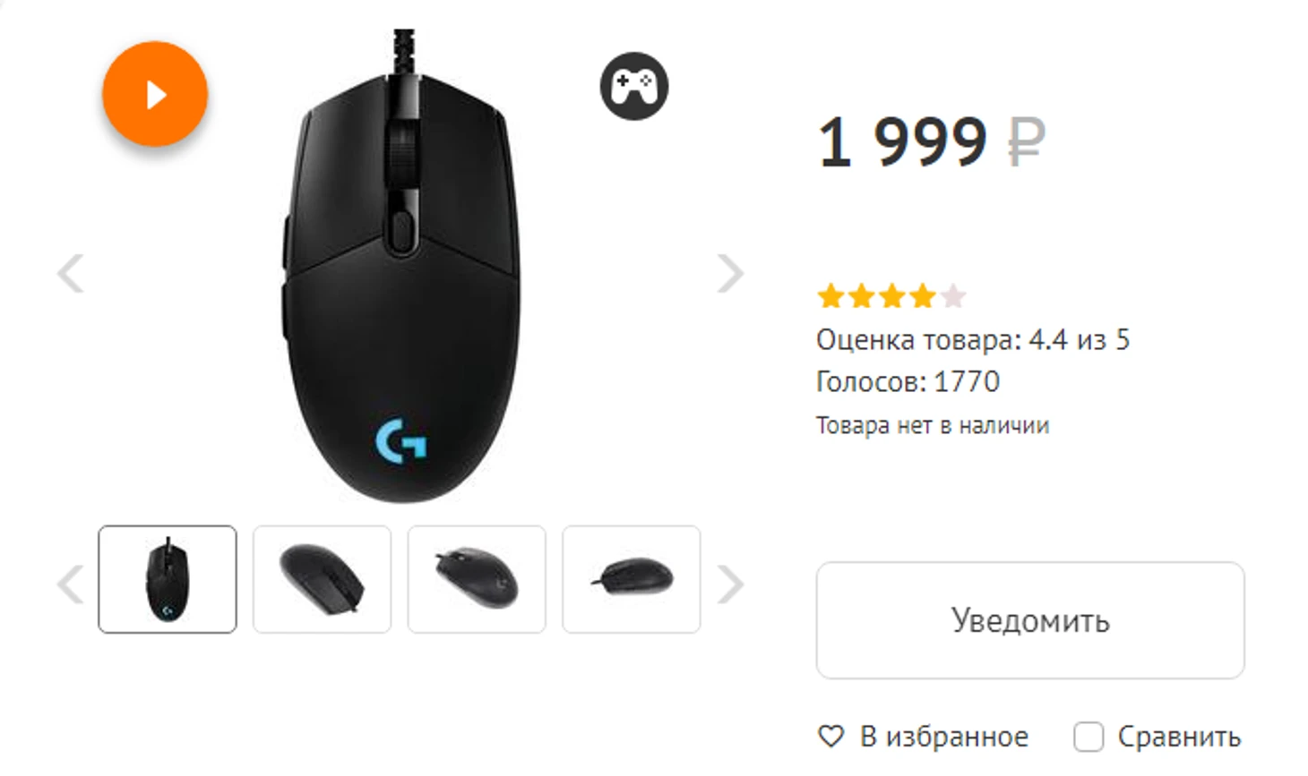 А вот этот экземпляр от Logitech имеет довольно необычный внешний вид, чем привлекает внимание геймеров. Он отлично подходит любителям разных подсветок, хотя на качество игры этот параметр никак не влияет. Провод у этой модели не такой надежный, как например, у той же HyperX, но, как заявляют игроки, этот вопрос решается просто: достаточно купить на Авито так называемый донор от Logitech за символические 200 рублей. Мышка идеально подходит для игры левой рукой. И хотя таких геймеров немного, радует что производитель учел их интересы. Стоит такая мышь 2900 рублей, что в принципе недорого.
