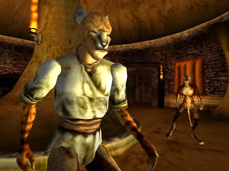 • Начнем с самого сложного. Каджиты – большой народ, но в Morrowind, Oblivion и Skyrim они представлены одним видом. В зависимости от фаз двух лун, Массера и Секунды, рождаются разные виды каджитов. Есть и похожие на домашних кошек альфики, есть сенчи – гигантские коты (больше самой высокой расы – высоких эльфов), которых используют как ездовых животных, и есть уникальный вид – Грива. Теперь поподробнее.
