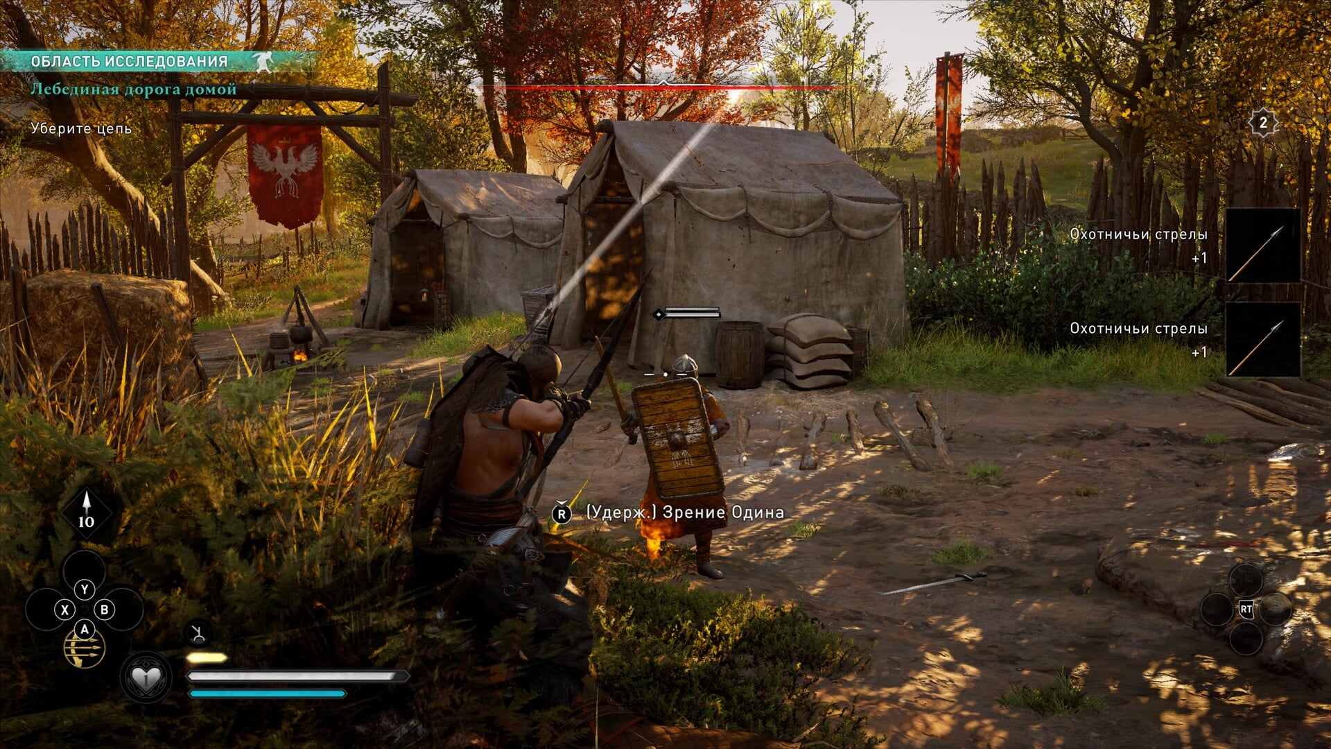 Все это сделано ровно по одной причине: в «Вальгалле» большинство сражений – массовые. Надоевший захват аванпостов сменили набеги: по нажатию кнопки драккар Эйвора пришвартовывается к берегу, братья и сестры викинги хватают топоры и несутся с вами крушить вражеский лагерь под боевые кличи. Каждое сражение приятно накаляется по мере прогресса: кругом хлещет кровь, отлетают головы и руки, здания загораются и тлеют. Набег завершается, когда вы разграбите все ценности на территории.