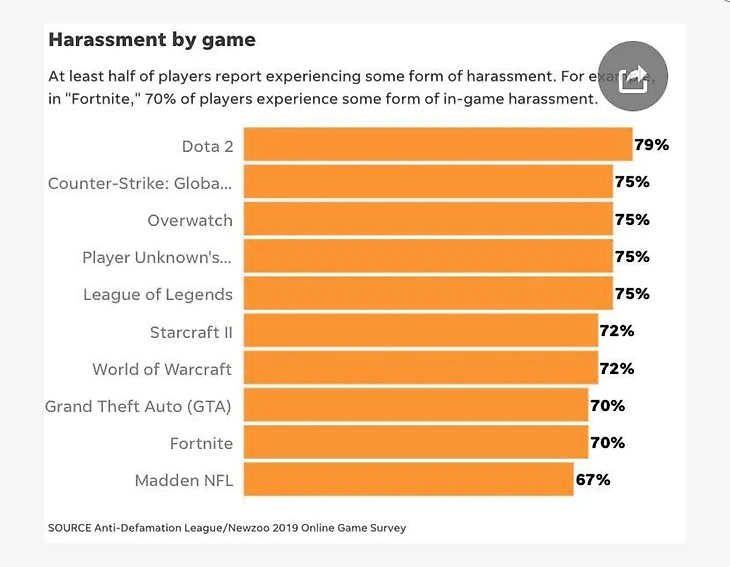 Для удобства разобьем наш разбор на два вида токсичности: в игре и за её пределами. Ведь, как оказалось, эти два понятия могут очень сильно отличаться. Некоторым играм, например, как League of Legends, удалось снизить токсичность в самой игре, благодаря четкому своду правил и хорошей системе репортов, хотя сам жанр MOBA очень сильно подталкивает игроков к агрессии.