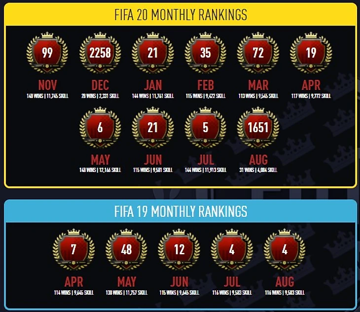 Кратко поясним как работает FUT Champions: всю неделю проходят ежедневные турниры на выбывание — это серия коротких соревнований, в которых можно получить квалификацию в FUT Weekend League, где и проводятся 30 матчей и определяются лучшие геймеры мира. По сути номера на картинке отображают тот ранк, которого добился Вейрганг в мировом зачете.