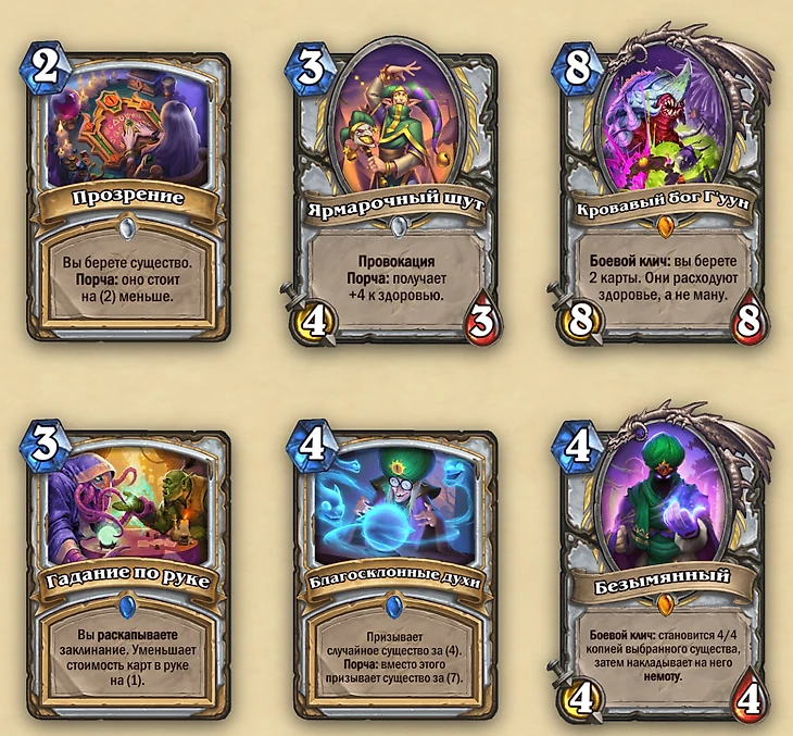 17 ноября в Hearthstone выходит новое дополнение «Ярмарка безумия». В дополнении в игру вернутся Древние Боги – И’Шарадж, Йогг-Сарон, Н’Зот и К’Тун, но не в том виде, какими они были в «Пробуждении Древних Богов». Помимо них в игре появится новое ключевое слово Порча – карта с Порчей улучшится, если вы разыграете карту дороже, пока она у вас в руке.