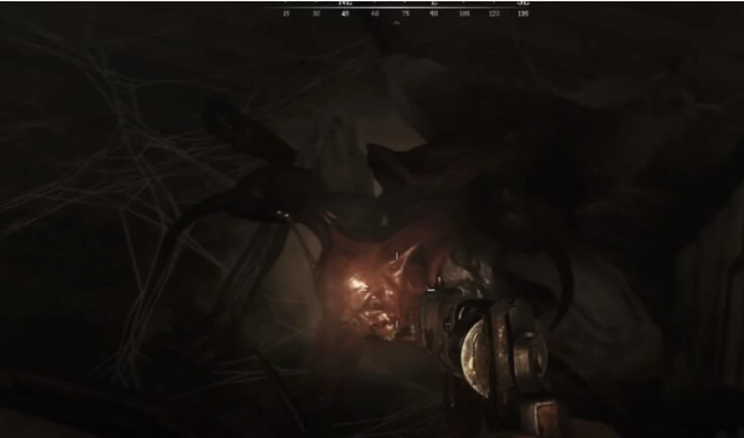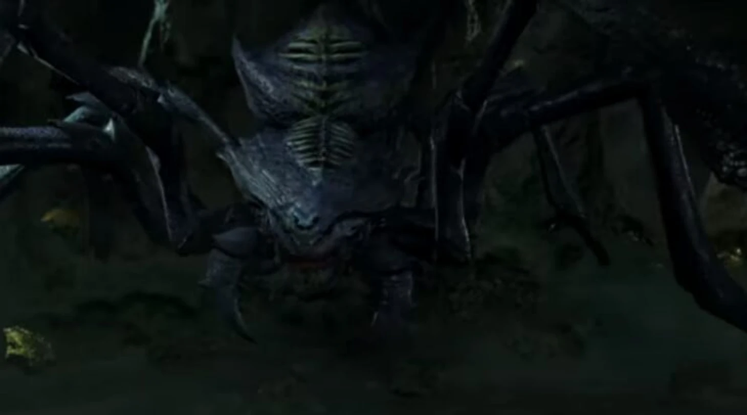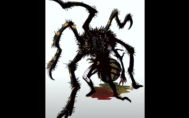 Человеческий череп с зубами, обтянутый плотью монстра. Разработчики не делятся подробностями создания дизайна монстра, поэтому остается только догадываться, как это существо собралось в единое целое паукообразное.