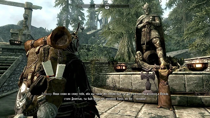 С ним сталкивались все, кто добрался до Вайтрана в первом же задании основного сюжета. Жрец Талоса невыносимо громко читает проповедь неподалеку от статуи, собирая вокруг местных жителей. Небольшое отступление: Талос – это император Тайбер Септим, объединивший весь Тамриэль в Империю, после смерти его причислили к богам. Эльфы не признают обожествления людей, поэтому после войны в мирном договоре запретили поклонение Талосу. Скайрим не хочет подчиняться эльфийскому правилу, о чем и рассказывает сюжет игры.