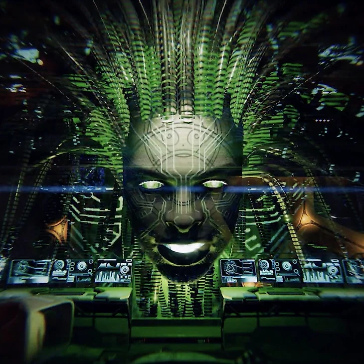 System Shock в 1994 году сосредоточился на другом аспекте жанра – высоких технологиях и их опасности. В этом шутере от первого лица главный злодей – искусственный интеллект SHODAN. Она (ее интерфейс озвучен и выглядит как девушка) захватила контроль над космической станцией и собирается использовать гигантский лазерный бур корабля для уничтожения Земли.