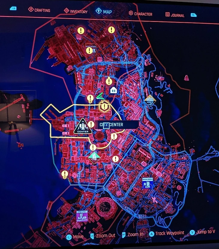 Карта Cyberpunk 2077: куча районов, небоскребы, бары и знаки вопроса