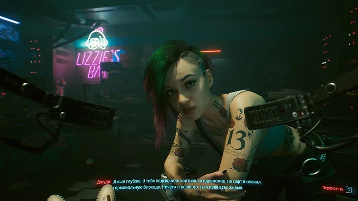 Она из корпоратов, но с ней можно устроить отношения, играя с любым жизненным путем. Впервые вы стретитесь с ней по сюжетке в квесте «Низвержение в Мальстрем», где девушка попросит Ви разобраться с бандой. Это необязательный пункт для прохождения, поэтому его легко пропустить.