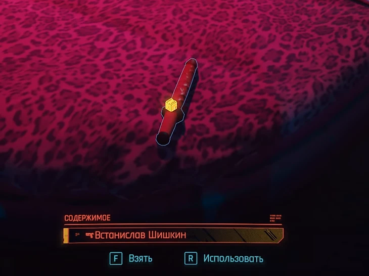 Только не убивайте ее! При первой встрече поговорите с ней и заключите сделку. Вместе с Джеки Ви выполнит ее задание по зачистке бандитов, а через некоторое время после выполнения получит на телефон сообщение от Мередит. Она скажет, что вы незнакомы, и вы должны выбрать пункт «Жаль, мне хотелось поближе посмотреть на твои татуировки». Она назначит место для встречи, вы посмотрите постельную сцену, а после нее можно подобрать с постели уникальное оружие – здоровенный дилдо «Встанислав Шишкин».