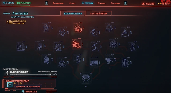 Спообности интеллекта – Взлом протокола и Быстрый взлом. Это обязательные ветки для любого хакера: там множество пассивных улучшений взлома.