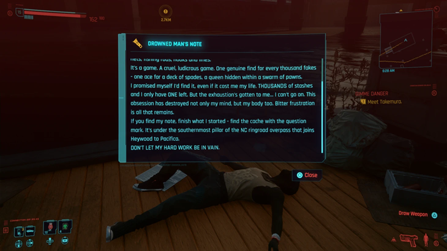 Там можно найти записку утопленника, в которой он упоминает тысячи сундуков с дразнящей отметкой. Он стал одержим идеей собрать все, но не справился – и просит того, кто найдет эту записку, продолжить его дело с поиском сундука.