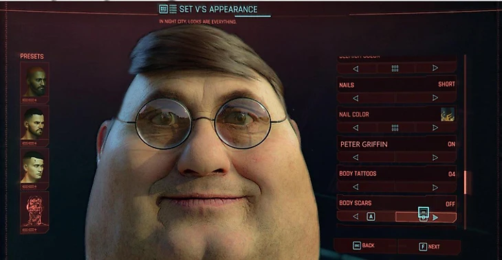 Редактор персонажа в игре не богат на возможности. Но в мемах можно увидеть Питера Гриффина, Илона Маска и деда Гарольда: