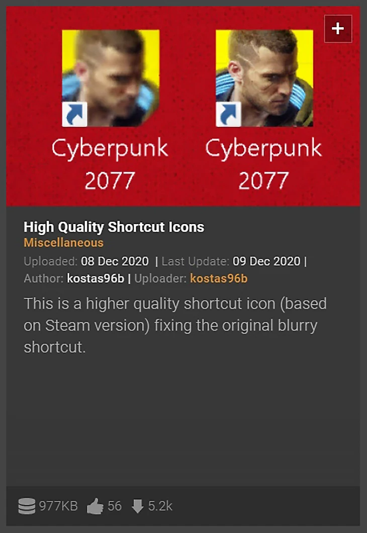 Кстати, появились первые моды на игру. Пока фанаты улучшили только ярлык Cyberpunk 2077: