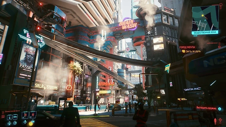 Помня, какой впечатляющий открытый мир CD Projekt RED создала для «Ведьмака 3: Дикая Охота», хотелось познакомиться как можно ближе с картой Cyberpunk 2077: вместо множества локаций и просторных полей здесь один единственный мегаполис Найт-Сити и небольшая зона за его чертой. Авторы изначально говорили, что мир Cyberpunk 2077 меньше «Ведьмака», но такой же масштабный за счет плотности контента и вертикальности высотных зданий.