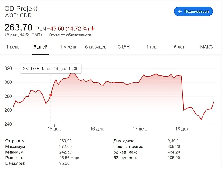 Акции CD Projekt падают: основатели студии потеряли сотни миллионов долларов