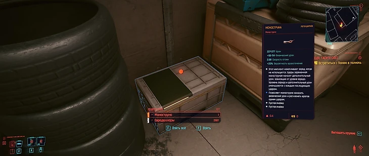Этот имплант у риперов стоит кучу денег, поэтому лучше немного сэкономить. Что более важно – моноструна, которая спрятана в городе – легендарная, то есть мощнее купленной у риперов. Единственная проблема – найти ее.