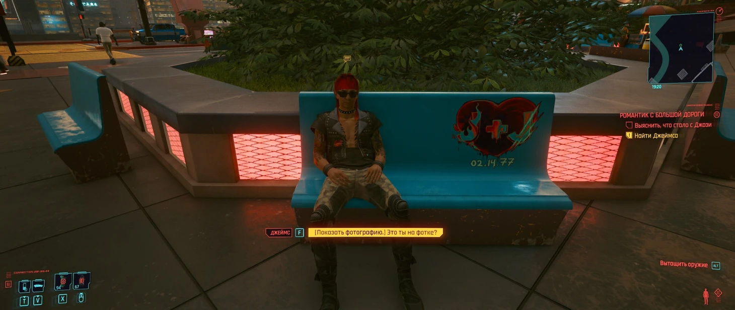 Нет никакого маркера/указателя – только описание района в квесте и фотография скамьи, где сидела парочка. Даже на глобальной карте были отмечены только основные сюжетные квесты и больше ничего!