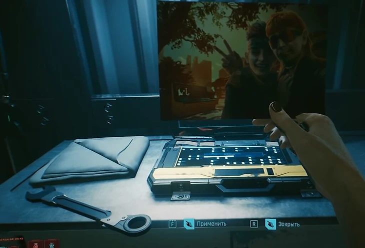 Еще одной точкой взаимодействия был ноутбук – там всего одно письмо, в котором неизвестный человек беспокоится о пропавшей девушке – очевидно, хозяйке этого гаража. Ви находит фотографию двух молодых людей, которые счастливо сидят на скамейке, и начинается само задание.