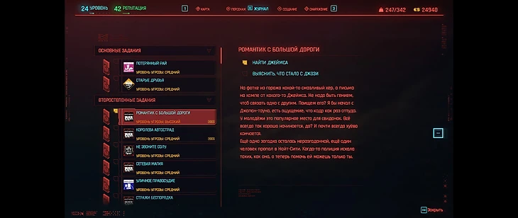 Когда-то давным-давно квесты в ролевых играх представляли собой исследования – игроку предстояло по диалогам, записям в дневнике и описаниям мест узнать, куда идти и что делать. Может, это отсылка к тем временам, а может, просто очередной баг игры, но именно так и проходится квест «Романтик с большой дороги» в Cyberpunk 2077.