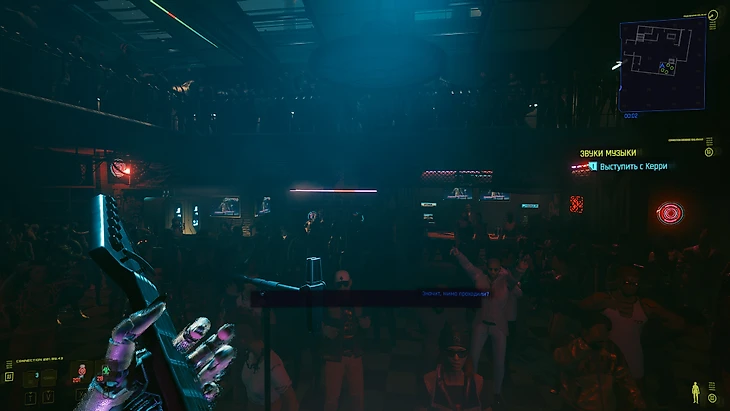 Кстати, окружающие ее не видят – похоже, мы экипируем галлюцинацию Ви. Это легко понять через зеркало и режим камеры, где руку не видно.