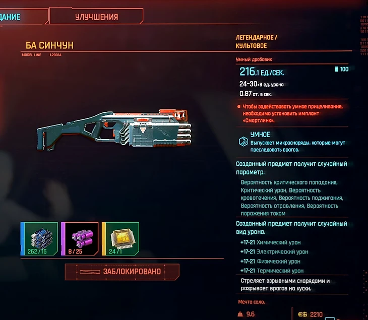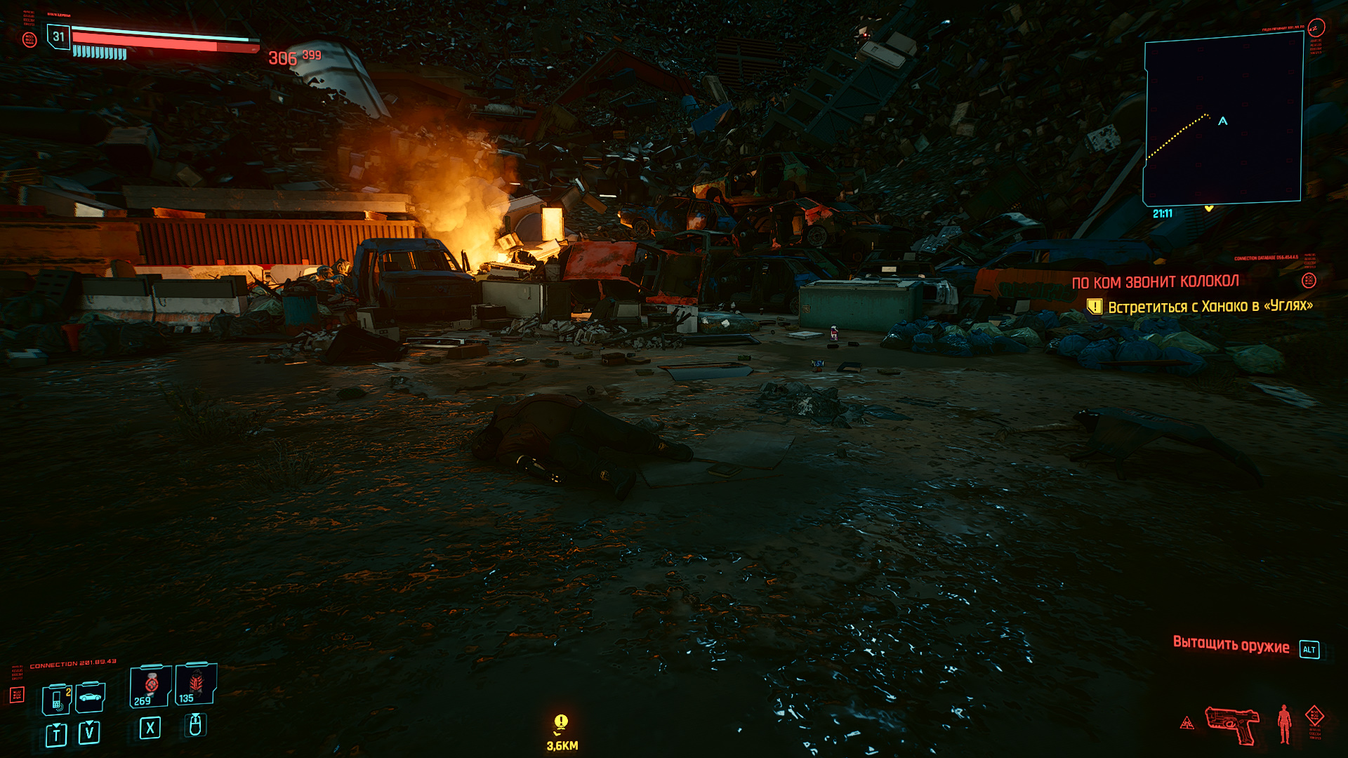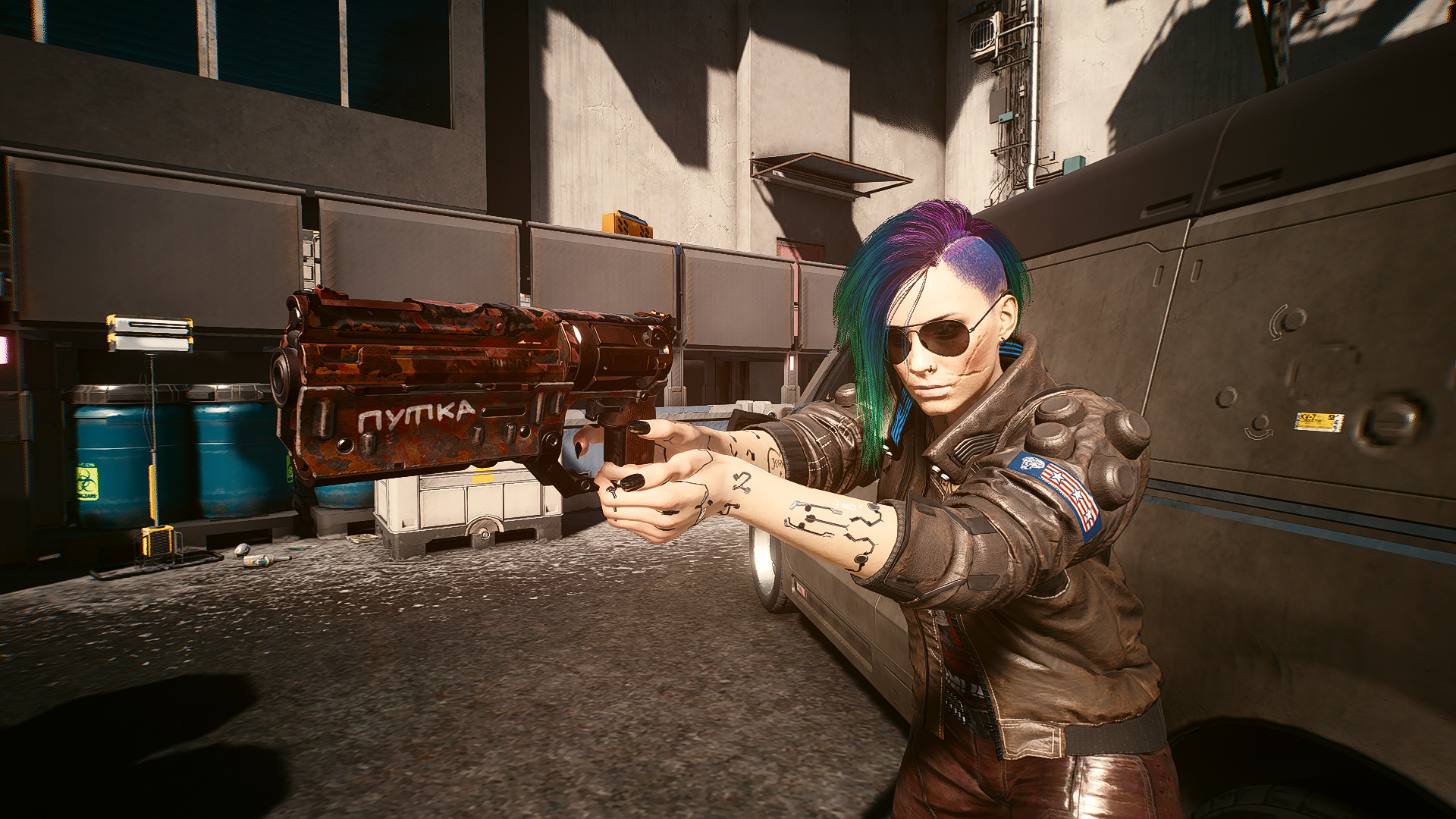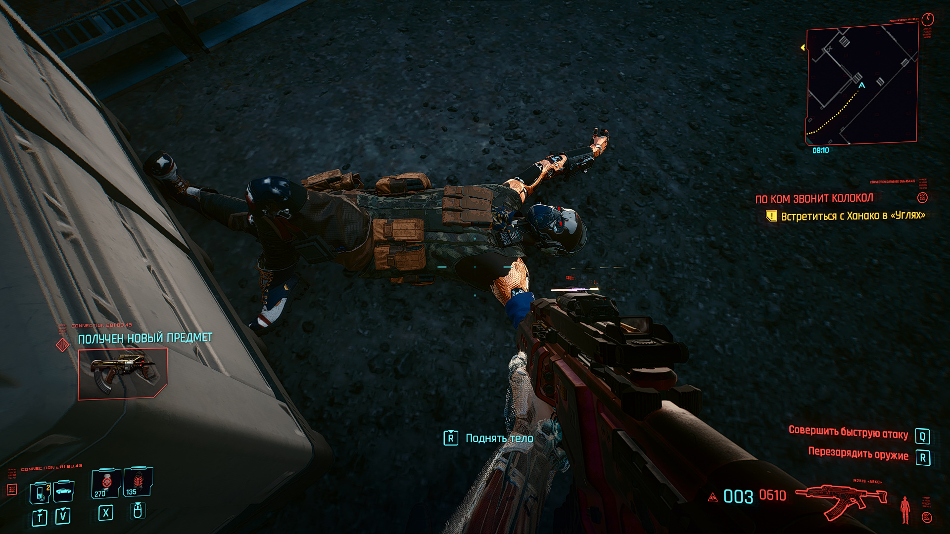 Вы правильно поняли, это секретная разработка СССР. Во вселенной «Киберпанка» он так и не распался. Это одна из самых мощных пушек в игре, но ее нельзя получить просто так. Отправляйтесь к значку с черепом, чтобы уничтожить бандитов. Ближайшие точки – Харгривс-стрит и бар «Красная грязь».