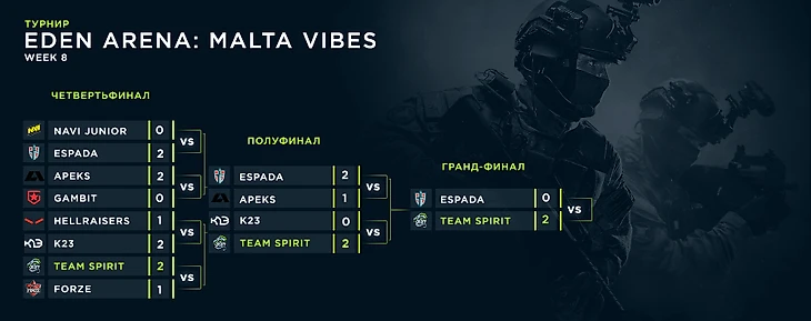 На протяжении всего турнира Eden Arena: Malta Vibes наш состав не проиграл ни одного матча. Это привело нас в гранд-финал, где мы одержали победу со счетом 2-0 над Espada и заняли первое место.