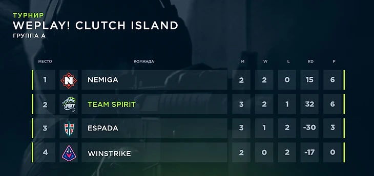 В разгаре лета нам не пришлось скучать благодаря еще одному RMR-турниру — WePlay! Clutch Island, который проходил с 23 по 28 июня. Групповой этап запомнился нам матчами против Nemiga, Espada и Winstrike.