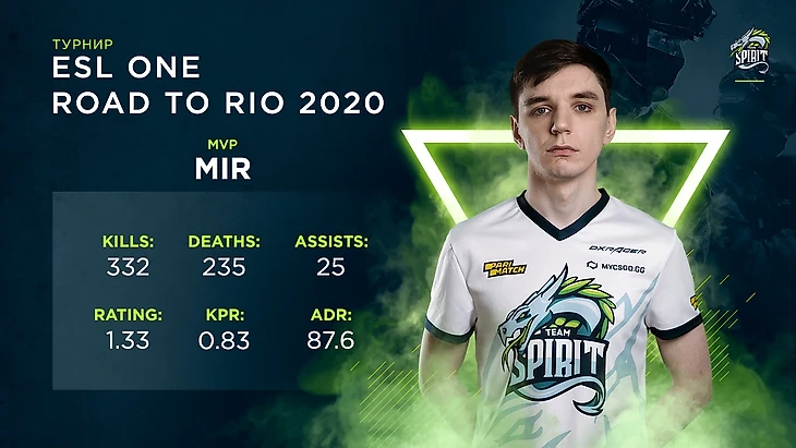Звание лучшего игрока турнира досталось Николаю «mir» Битюкову. Его рейтинг 2.0 за все матчи на ESL One: Road to Rio составил 1.33 👇
