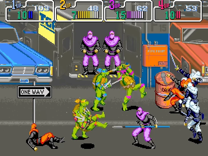 А еще взрывающиеся бочки были в знаменитой игре про «Черепашек-ниндзя» — Teenage Mutant Ninja Turtles (1989). Фанаты Dendy наверняка помнят этот проект! Бочки в игре работают по привычной механике и на них даже есть надпись «Danger». Видимо, для игроков тех лет не было очевидно, что если ты ударишь красную емкость, то она взорвется и нанесет урон.