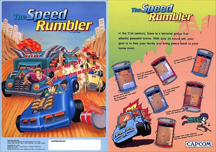 Первой игрой, где эти емкости действовали по знакомой нам механике, стала гонка для аркадных автоматов 1986 года — Speed Rumbler. Да, бочки изначально появились не в шутере или beat ’em up, а в гоночной игре! В начале партии все канистры в Speed Rumbler синего цвета. Но после удара они становятся красными и через некоторое время взрываются. С помощью этой механики можно эффективно устранять противников!