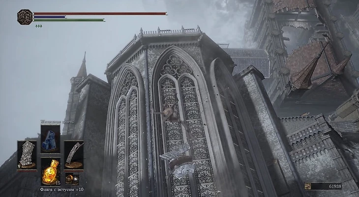 На крыше храма огня (хаб-локации в DSIII) находится драгоценный осколок эстуса и гнездо птенца, знакомого игрокам еще по первой DS. Самый популярный способ попасть туда – через башню, для начала купив ключ за 20 тысяч душ. Но если потренировать свои навыки прыжка, то можно забраться на крышу бесплатно.