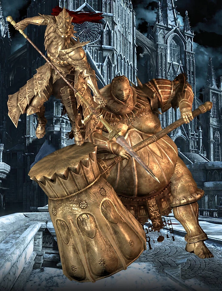 Описание сета драконоборца гласит, что рыцарь, носивший эти доспехи и охранявший разрушенный собор, ушел на поиски безымянного короля – первенца Гвина (финального босса первой части). Получается, он не мог погибнуть в первой части игры, ведь он покинул Анор Лондо еще до прихода туда протагониста игры!