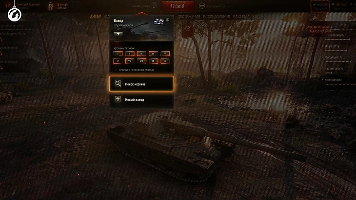 Теперь игроки в Ангаре могут автоматически искать совзводных. Они подбираются по рейтингу WTR, количеству техники в Ангаре и количеству боев на каждом уровне. Доступны дополнительные параметры поиска: игра на определенном уровне, наличие голосовой связи.