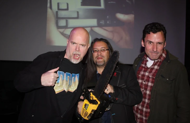 Том Холл, Джон Ромеро и Дэйв Тейлор (программист) на 20-летнем юбилее Doom.