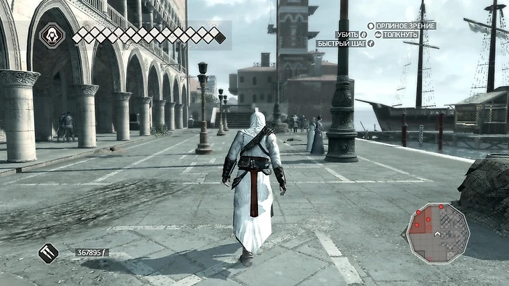 Хотя сюжет Assassin’s Creed 2 тоже делится на секции памяти, он не такой однообразный: почти в каждом задании Эцио оказывается хотя бы в относительно, но уникальной ситуации. Где-то происходит погоня, в другой раз герой отправляется на карнавал-маскарад, а еще и полетать на гаджете за авторством да Винчи доведется.