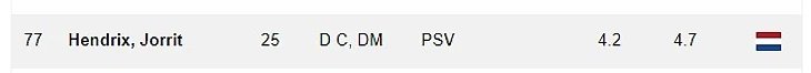 Это странно, так как у Йоррита опека 13, отбор 12, выбор позиции 13 – неплохо, но такие же показатели у Никиты Чернова. В то же время хороший пас (14), принятие решений 15, работоспособность 16 намекают, что Хендриксу должно быть комфортнее играть опорника или центрального полузащитника.