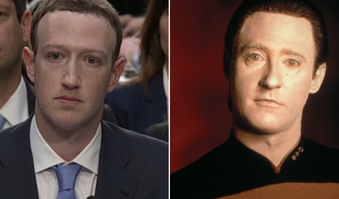 Особую популярность мемы о нем набрали в 2018 году после Парламентских слушаний, на которых он объяснял, как персональные данные пользователей фейсбука использовались другими аналитическими фирмами. Странность некоторых движений и монотонность речи только углубили веру многих конспирологов в то, что Цукерберг – не совсем человек.