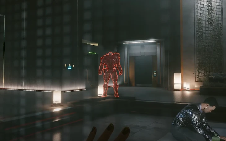 В этот момент становится неуютно, потому что Смэшер пялится на экран, за которым спрятались Ви и Джеки. С модификацией «Детектор угрозы» станет понятно, что он все-таки вас увидел. Она подсвечивает всех врагов, которые заметили вас.